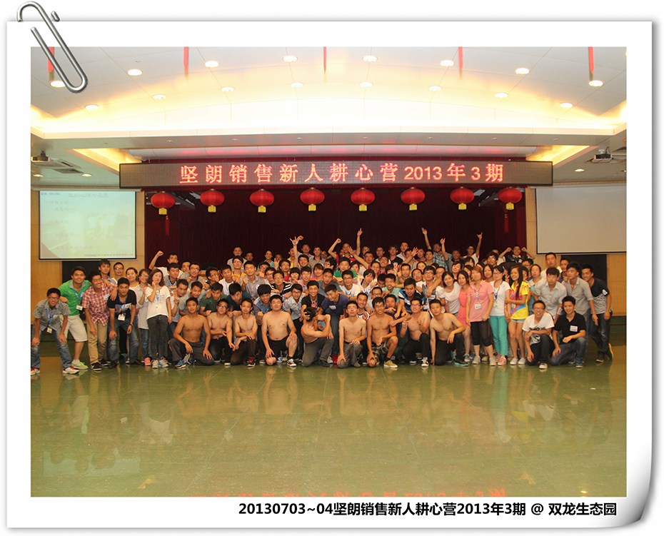 2013年7月3日至4日, 113位坚朗的销售伙伴,齐聚双龙生态庄园,用心感受,挥洒热情,赋予自己生命不一样的看见,一起见证彼此当下的改变。