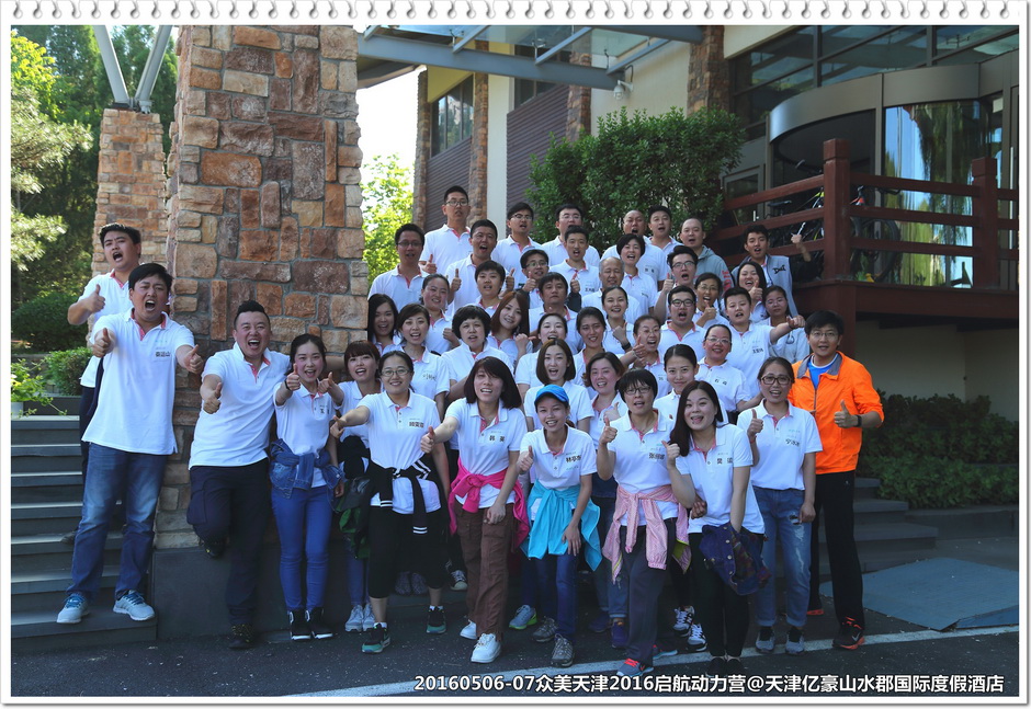 初夏五月,48位众美天津的各层学员一起相约在天津蓟县亿豪山水郡国际度假酒店——一个依山傍水的宝地,左依盘山,右傍于桥水库。
