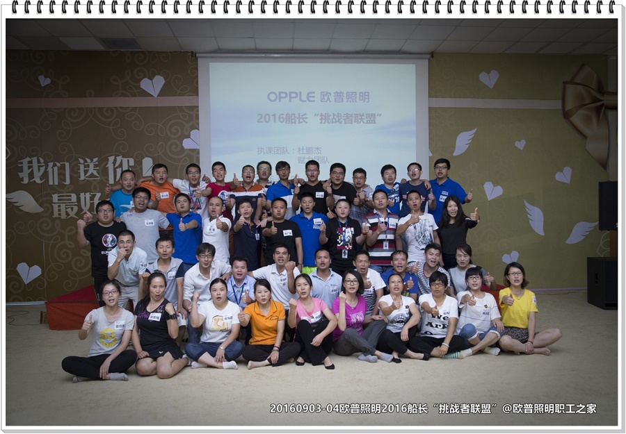 金秋9月,欧普照明的40余位船长齐聚一堂。来到了欧普照明的职工之家开展了这次为期一天半的课程。来自不同的部门,不同的产线,不同的区域的四十多位船长到了这里之后,就变成了一个整体——“挑战者联盟”。